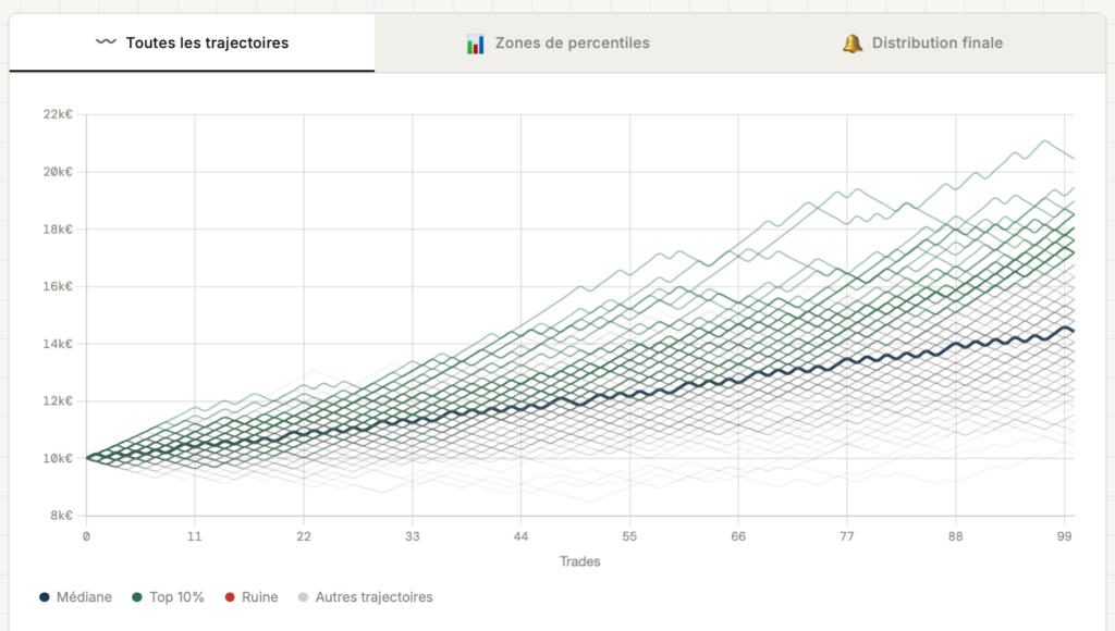 Ce laboratoire ne prédit pas. Il rend visible ce que les moyennes masquent : la dispersion réelle des issues possibles, la profondeur des drawdowns que votre système peut imposer, et la pression psychologique que ces trajectoires exercent sur celui qui doit les exécuter.