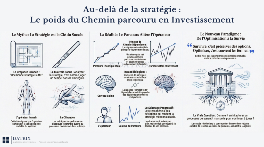 Ou : L’illusion de la comparabilité et le poids du chemin parcouru 1. Fracture cognitive : pourquoi deux stratégies identiques produisent des résultats divergents Une croyance tenace imprègne le monde de l’investissement et du trading : la conviction qu’une stratégie…